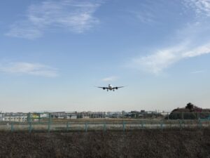 飛行機の着陸が近くで見れる公園でそんなに近くで見れることないやろ~と思っていましたが