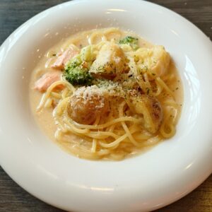 この日は北海道じゃがいもがゴロッと入ったボリューム満点のクリームパスタにしました✨
