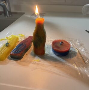 夏休みももうすぐ終わりということで最後の最後にめんどくさい自由研究を残した息子とろうそくを作りました️