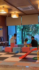 滑り台やブロック、お絵かきをする場所もあり